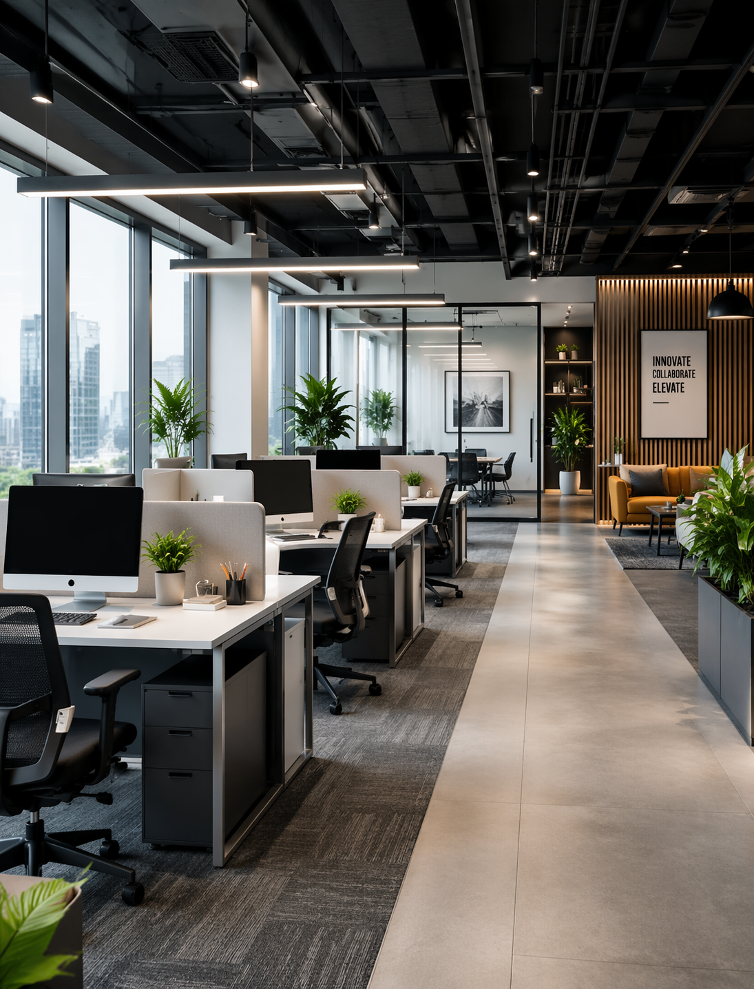 We design offices that reflect innovation, comfort, and your company’s identity.