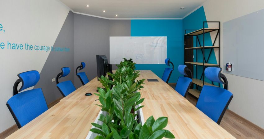The conference room featured in the provided image is a textbook example of this modern evolution. By utilizing bold geometric accents, vibrant colors, and integrated biophilia, this room transforms a standard square footage into a high-octane engine for innovation. Let’s break down the interior design ideas that make this space a masterclass in modern corporate aesthetics.