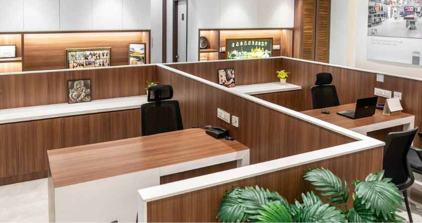 3. The Gallery Wall: The vibrant, eye-catching mural on the far right adds an infusion of personality. Art in the workplace is not just decoration; it signals that the company values creativity and has a pulse outside of spreadsheets and targets.